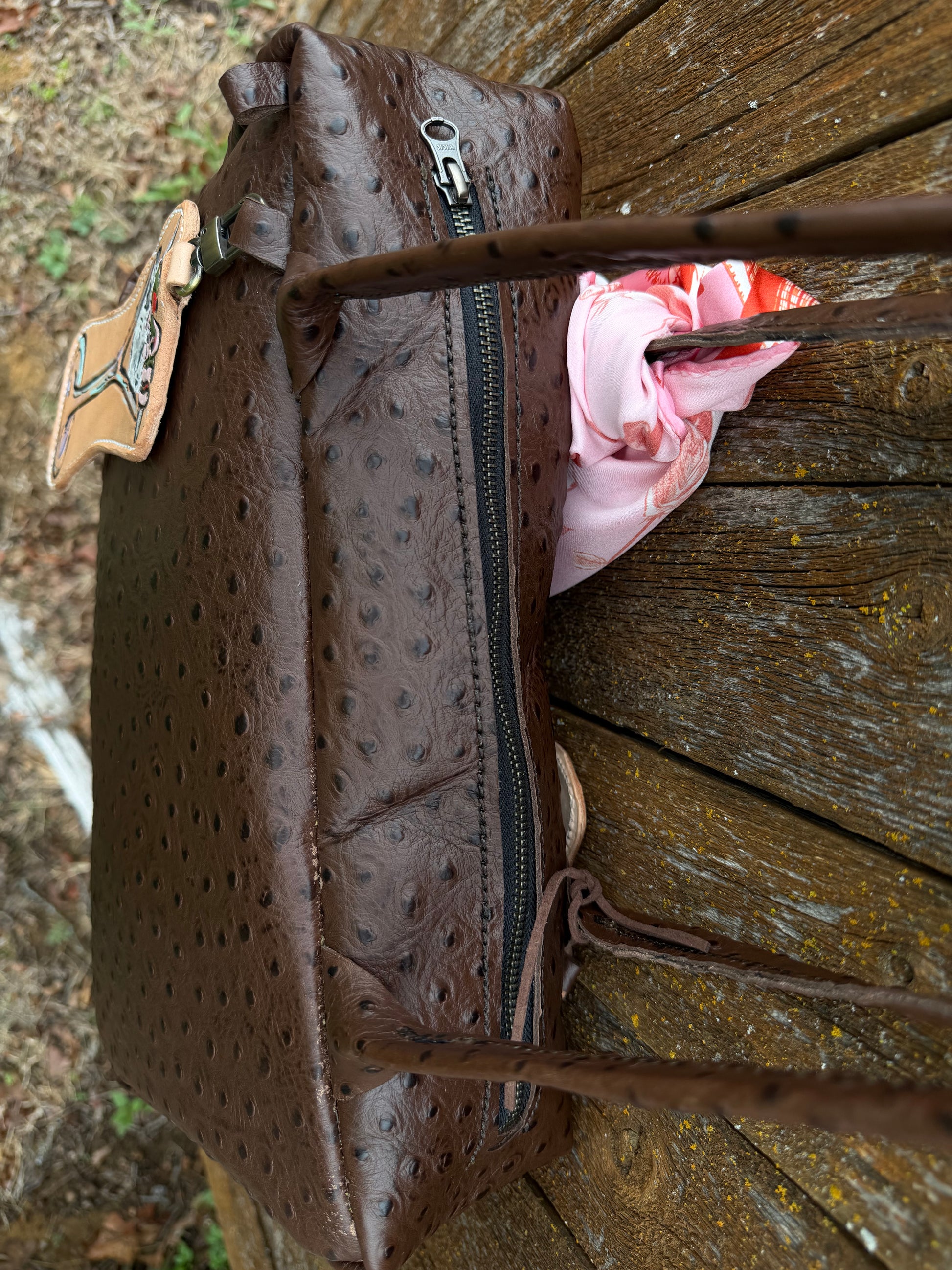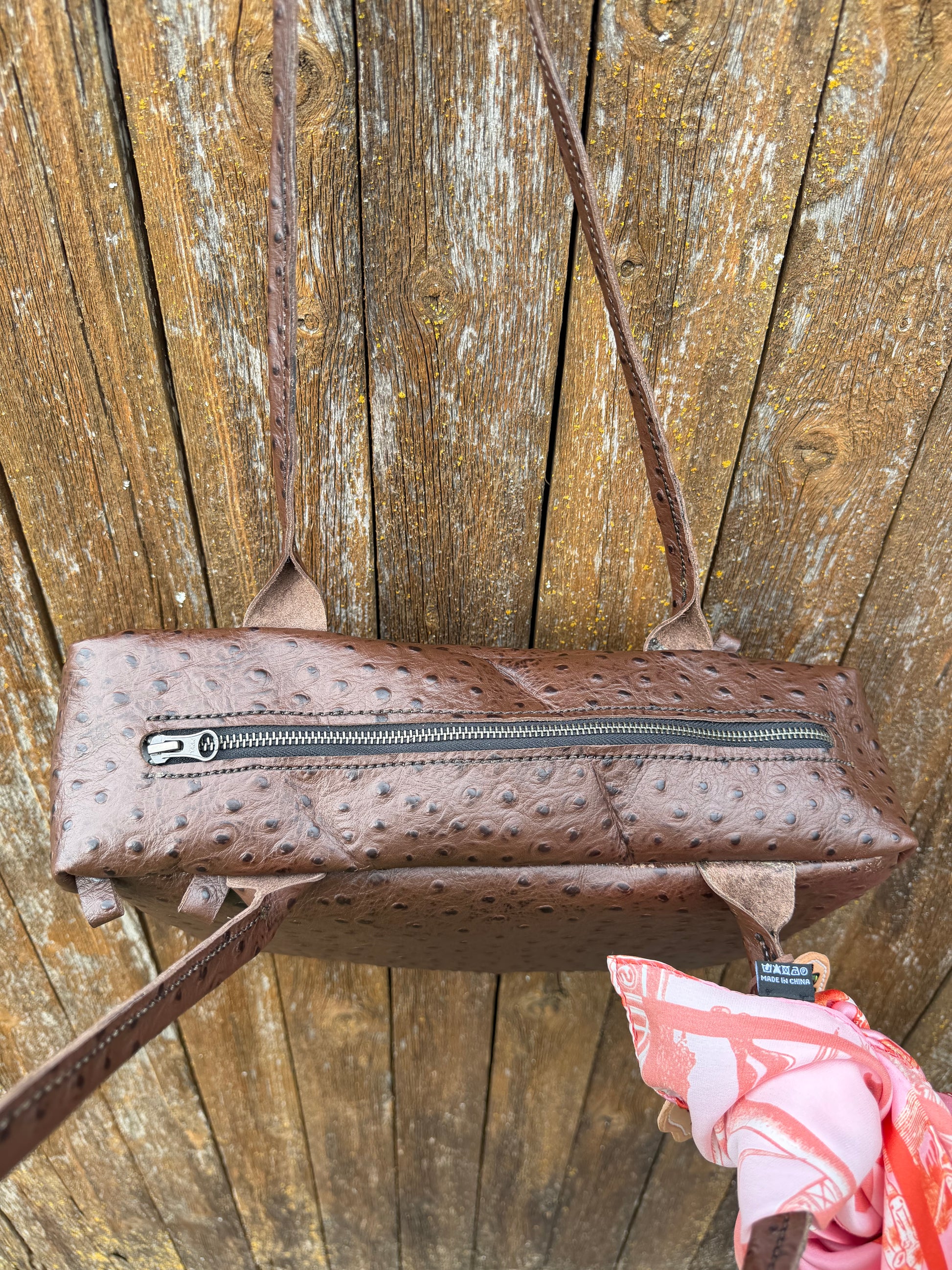 Chocolate Embossed Ostrich Drop Shoulder Bag